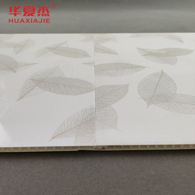 Ce panneau mural en PVC, qui peut également servir de panneau de plafond, est un matériau de construction de haute qualité.Le panneau dispose d'un procédé unique d'estampage à chaud, avec un beau motif de feuilles comme indiqué sur l'image, ajoutant une touche élégante et naturelle à votre espace.